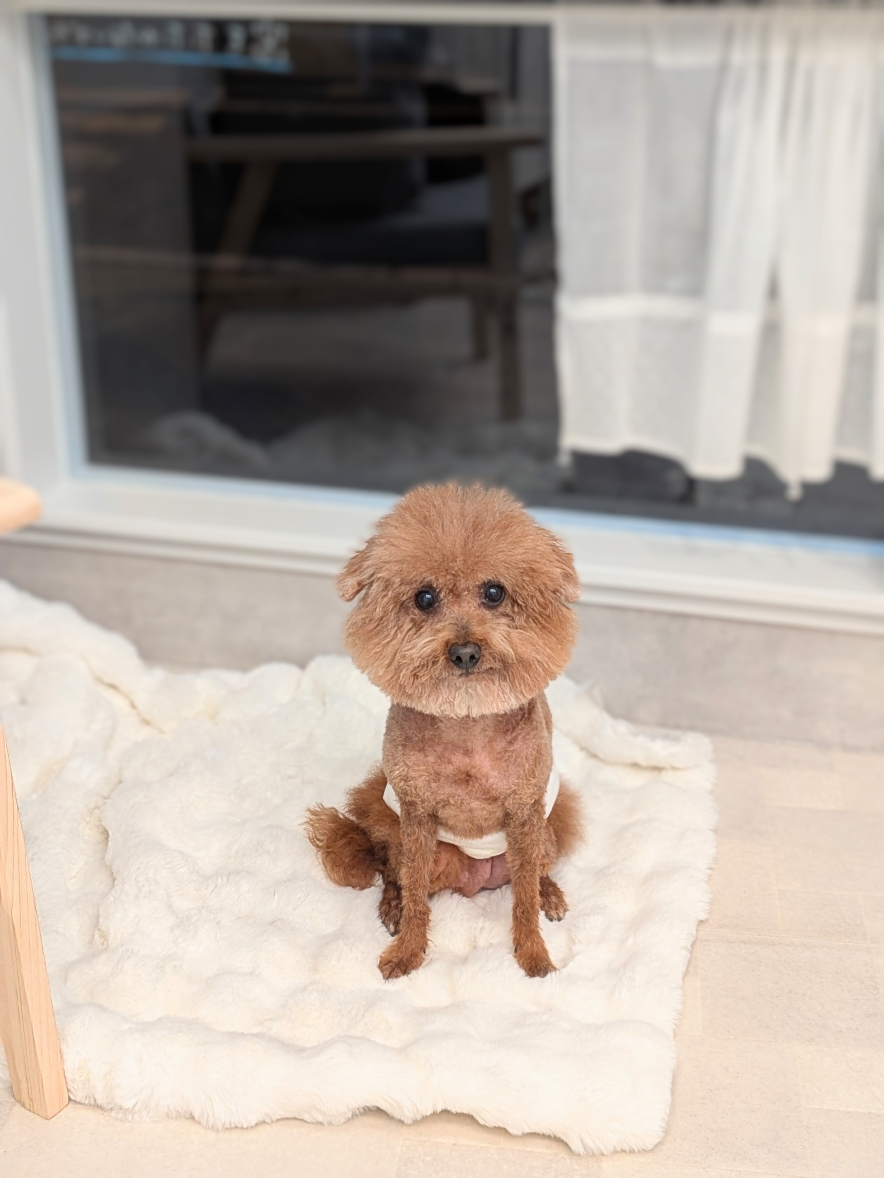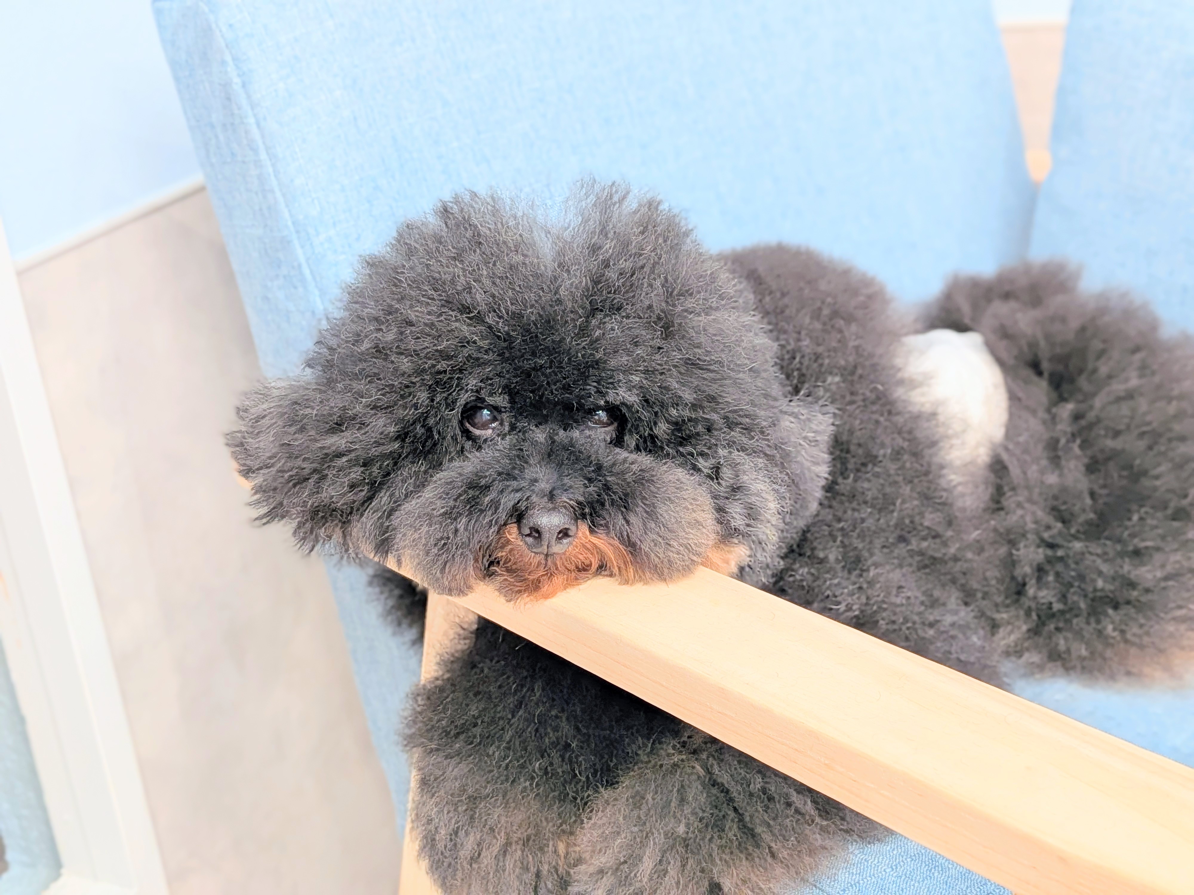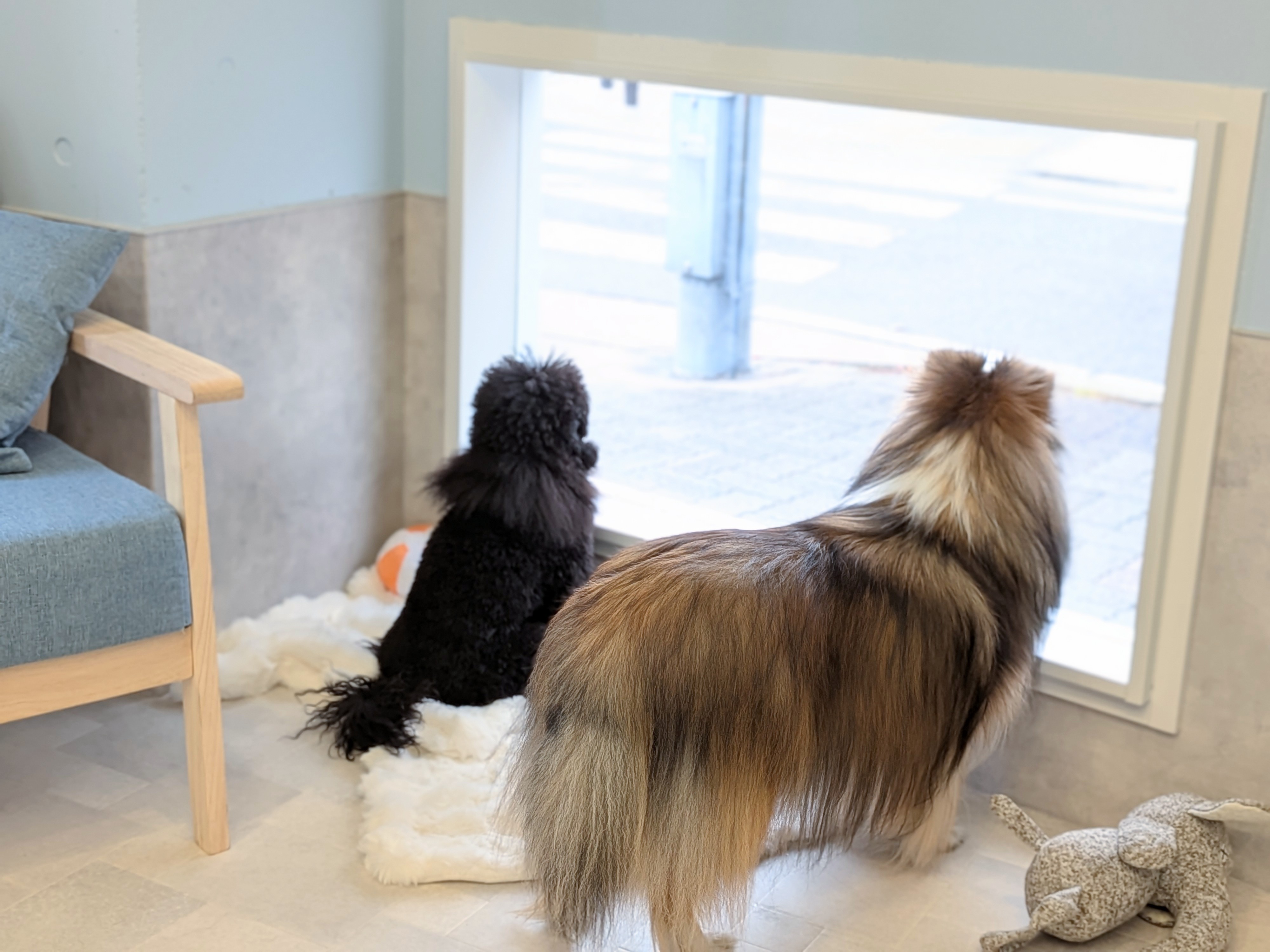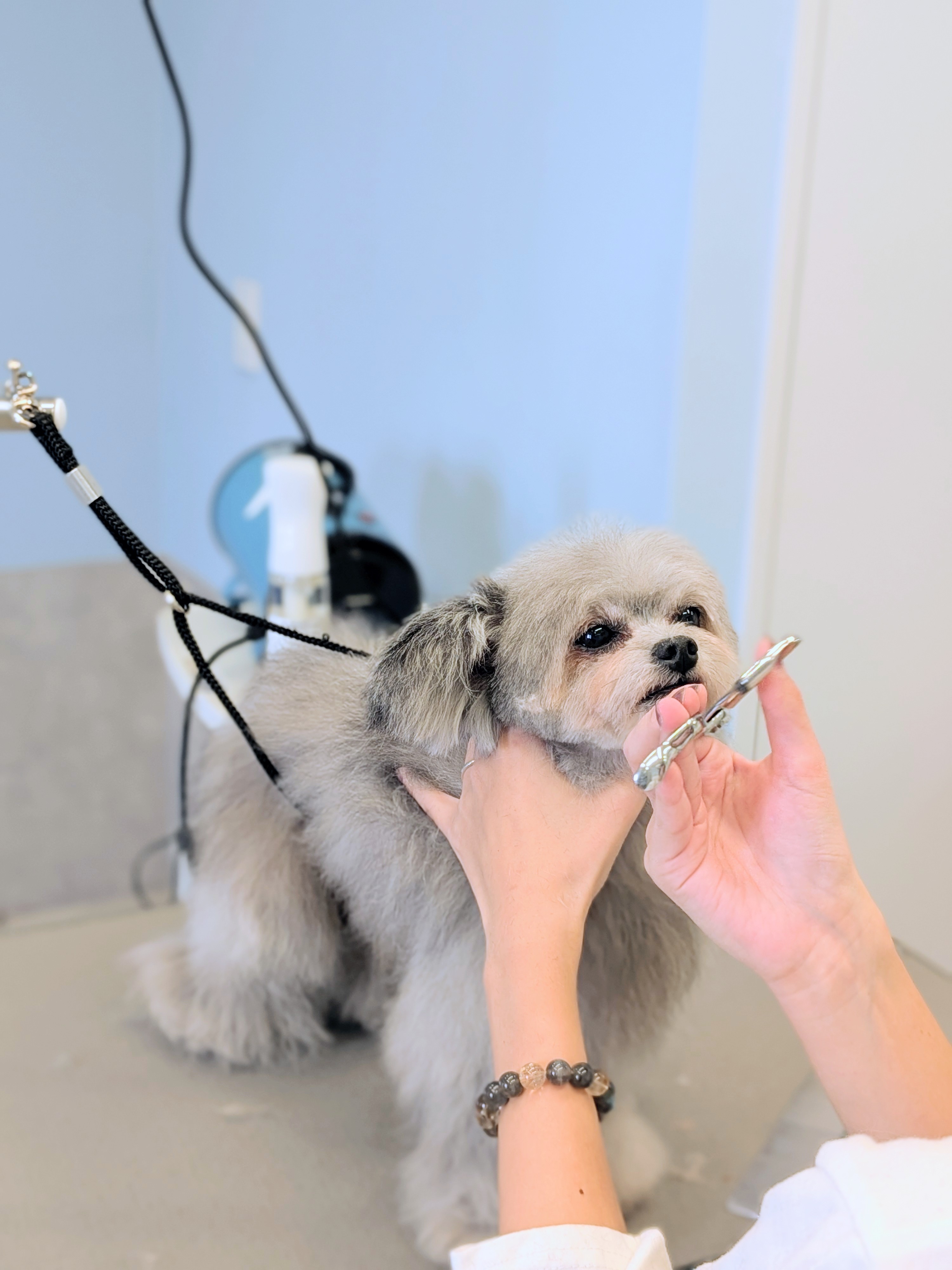 ケージが好きな子はケージで、ふかふかの毛布が好きな子は毛布の上で、トリマーのそばが好きな子は足元で、その子がいちばん落ち着ける場所で、のんびりと過ごしてもらいます。